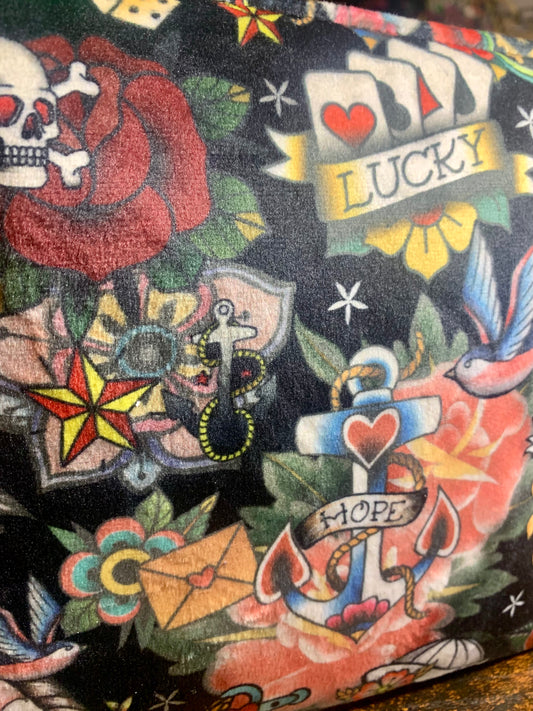 Old Tattoo design velvet makeup /cosmetic bag