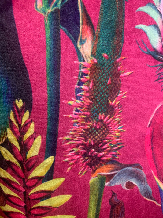 Pink velvet botanical print wash bag /storage